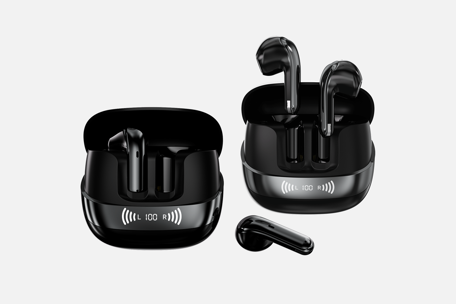 – Auto-connection: Simply open the charging case – connect via Bluetooth (search fo